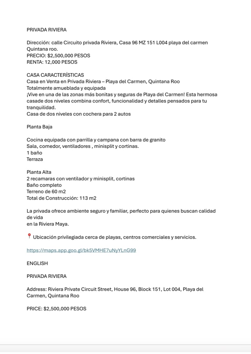 Address: Riviera Private Circuit Street, House 96, Block 151, Lot 004, Playa del