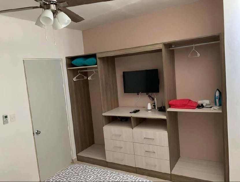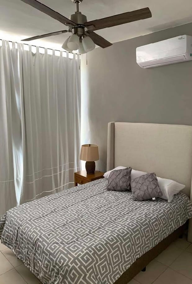 2 recamaras con ventilador y minisplit, cortinas