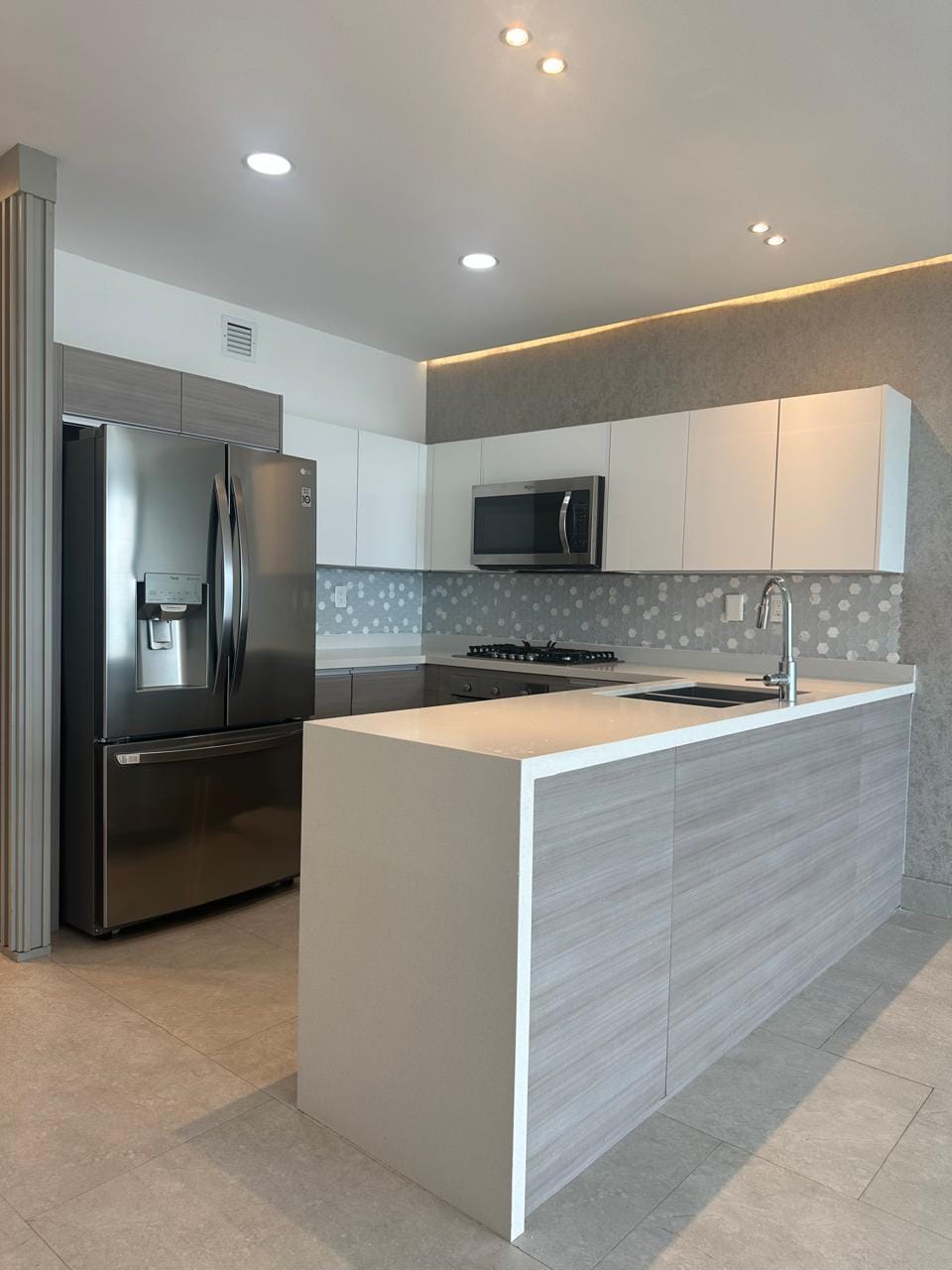 ✔ Cocina integral con barra de cuarzo y refrigerador duplex