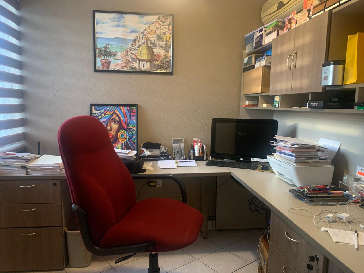 baños completos y tina de baño en habitación principal; 1 medio baño. cocina integral amplia con acabados de madera, un amplio recibidor y sala con doble altura, sala de televisión, una oficina, oficina, lavandería,cuarto de garaje al frente de la propiedad, así como un amplio patio ideal para tus reuniones. portón automático, 2 tinacos de 3,000 lts en total, 6 minisplit frío y calor. Alarma y cámaras de seguridad .se pueden considerar mascotas; cochera para 3 autos.