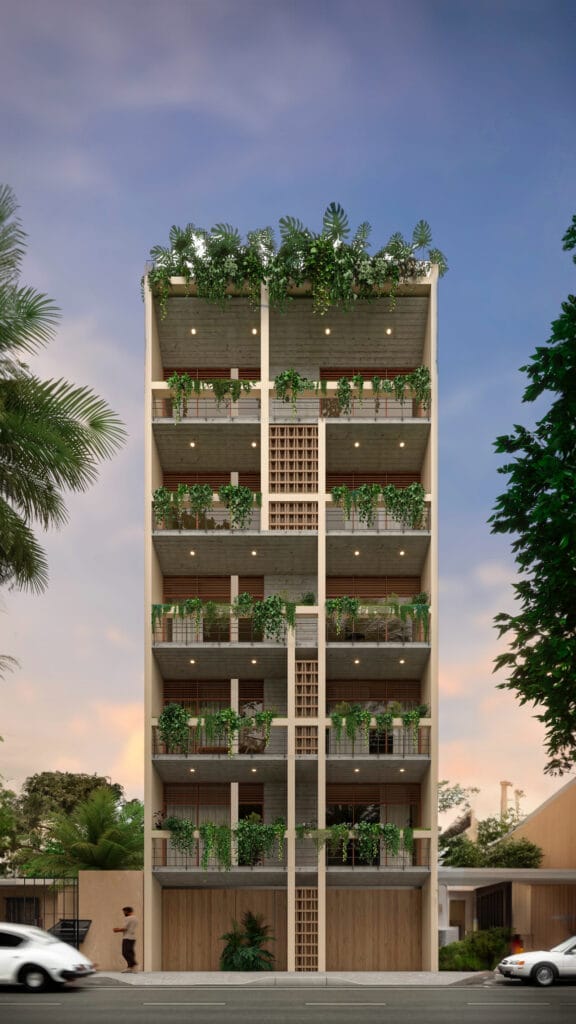 Estudios con vegetación y diseño rústico-moderno, rooftop vista al mar con área living, solárium, alberca...